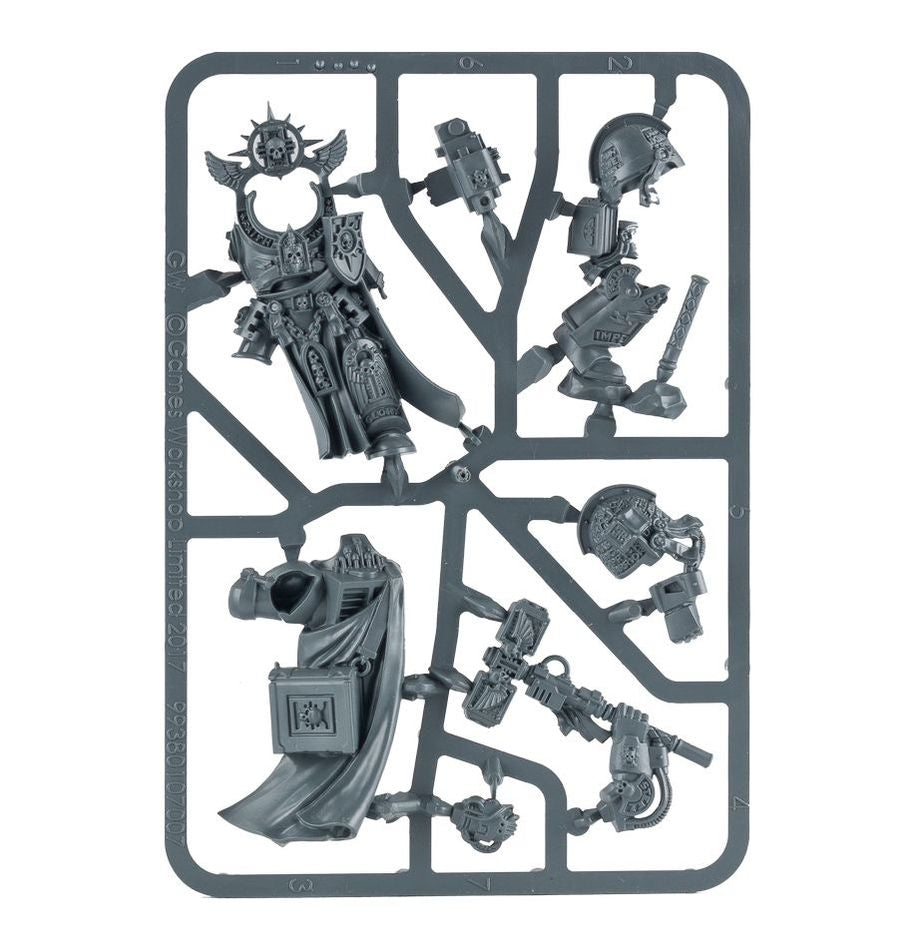 This multi-part plastic kit contains the components necessary to assemble Grand Master Voldus, Warden of the Librarius. This is a miniature absolutely brimming with details, as befits a Grand Master of his power and reputation. His Terminator armour features numerous sacred inscriptions, along with plenty of skulls, chains and magical tomes. His legendary hammer, standing as tall as Voldus himself, is replete with purity seals and cabling reflecting its purpose as a conduit for his psychic energies, and he wields a wrist-mounted storm bolter on his left arm.
